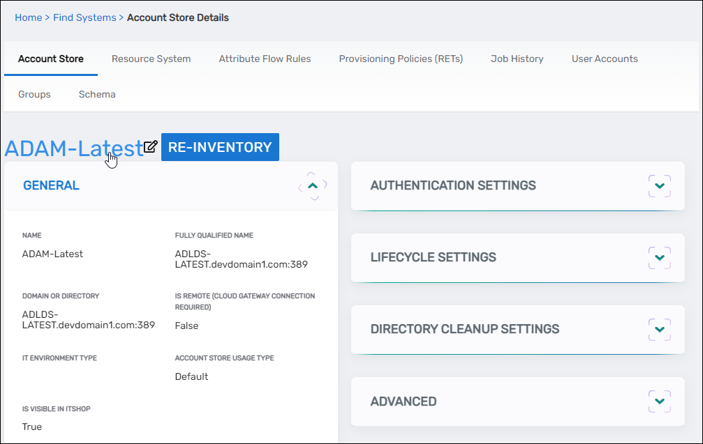 - Navigate to Account Stores and Systems and locate the newly created Linux account store.