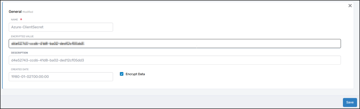 • Encrypt Data - Select the checkbox if you want to cipher the value.