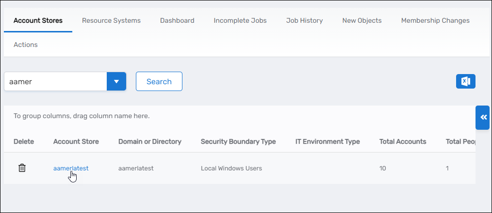 Search for the Local Windows account store with the user accounts you want to manage and click the Account Store link to navigate to the Account Store Details page for the account store.