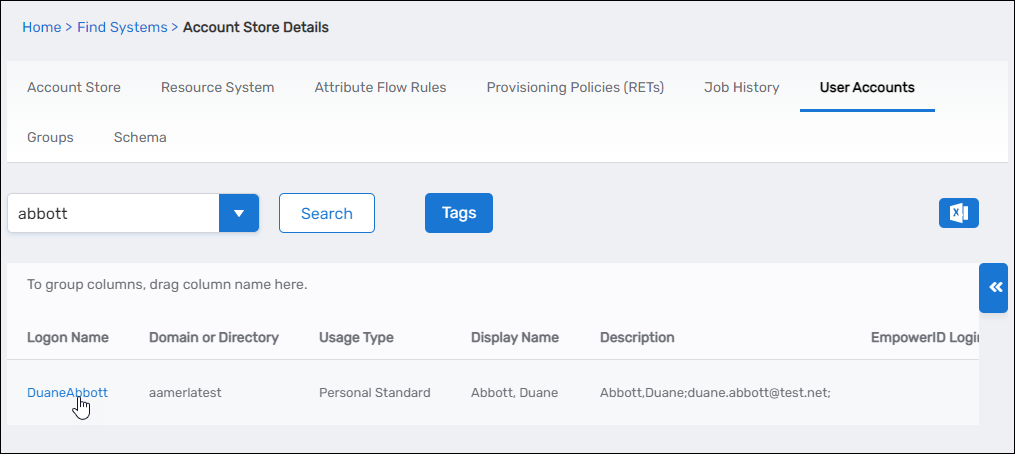 On the Account Store Details page, select the User Accounts tab.