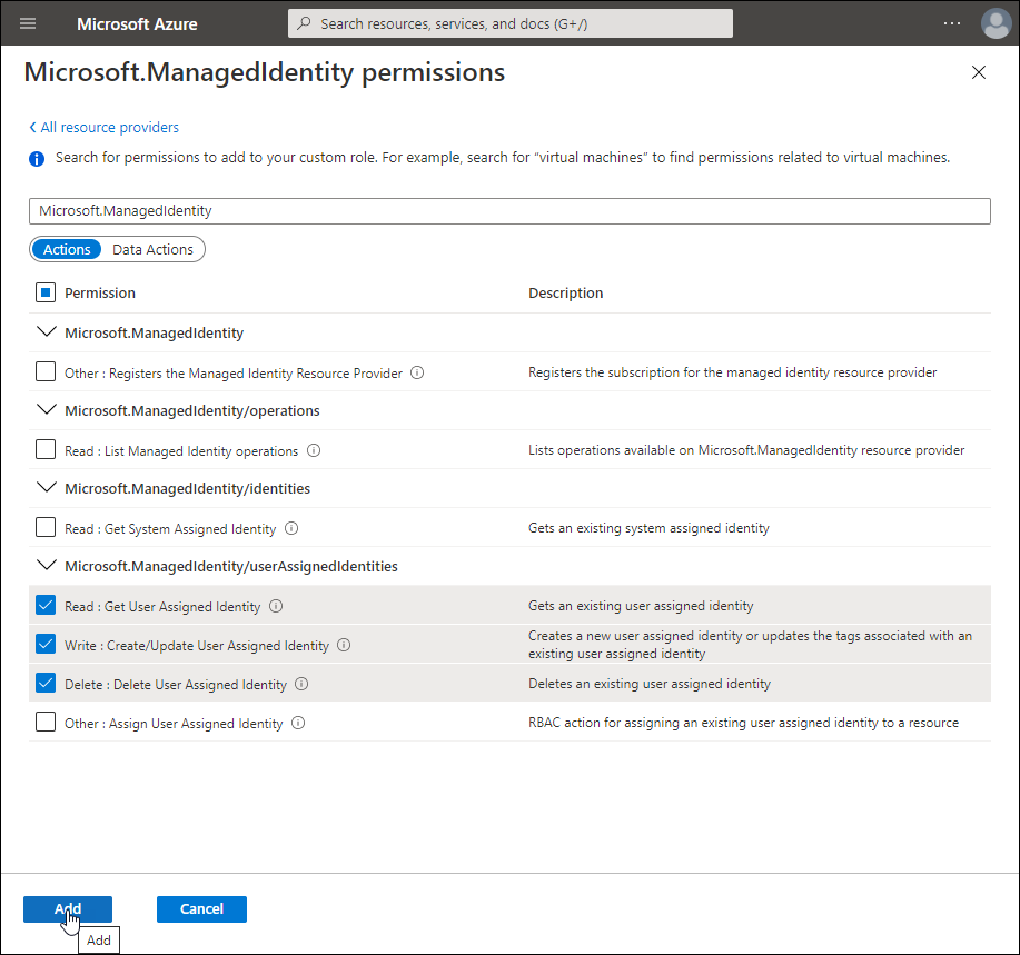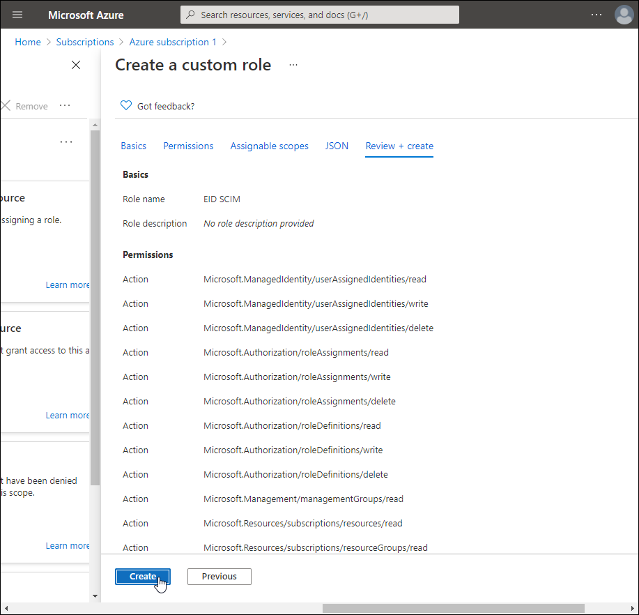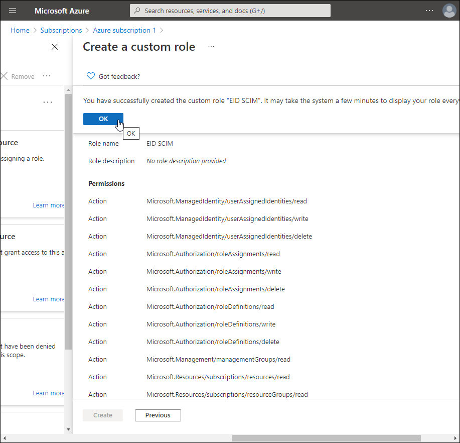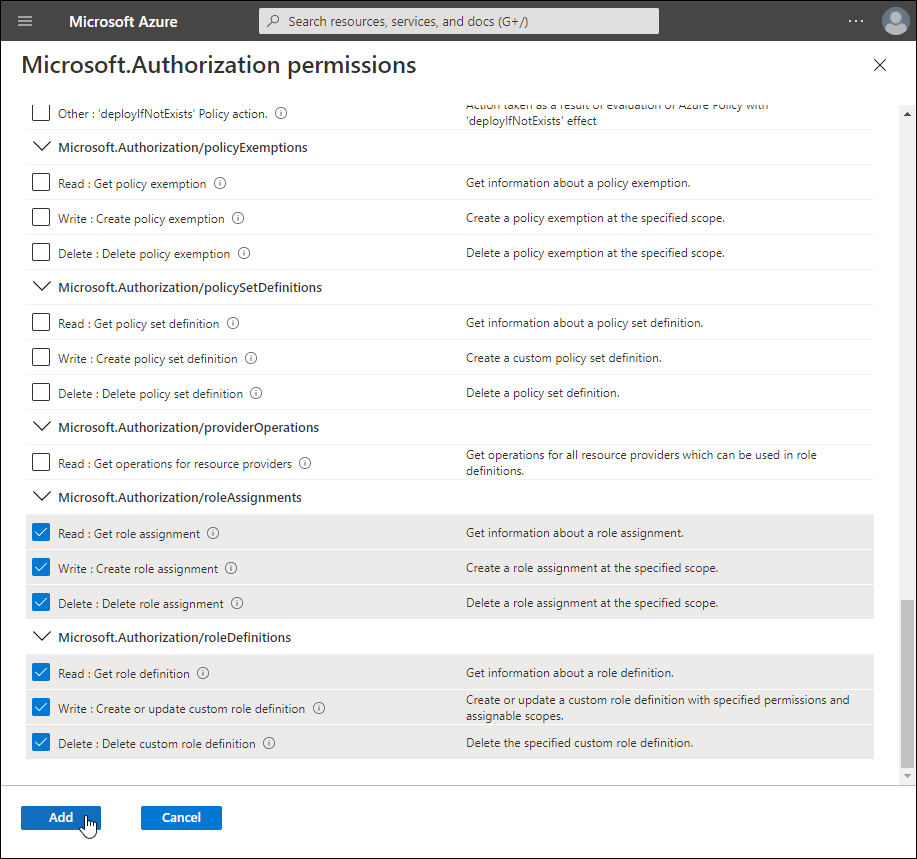 | Write Custom Role Definitions | Microsoft.Authorization/roleDefinitions/write |