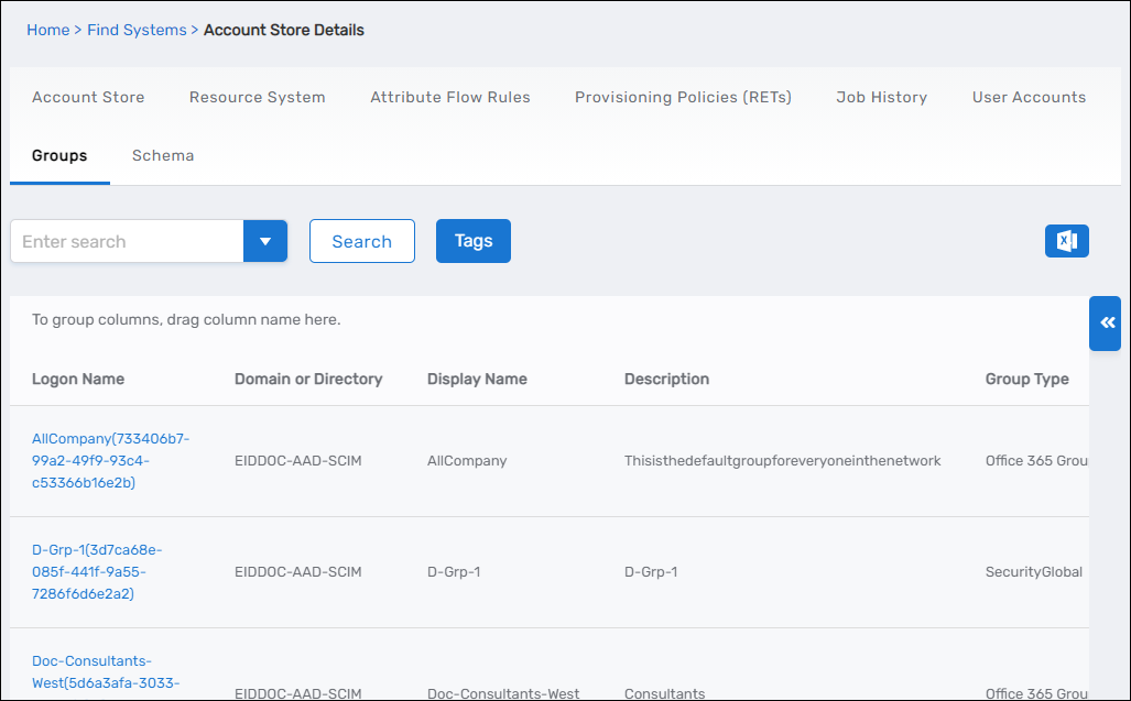Now that the Account Inbox Permanent workflow is turned on and inventory for the account store is enabled, you can monitor the inventory of users and groups from the Users and Groups tabs of the Account Store Details page.