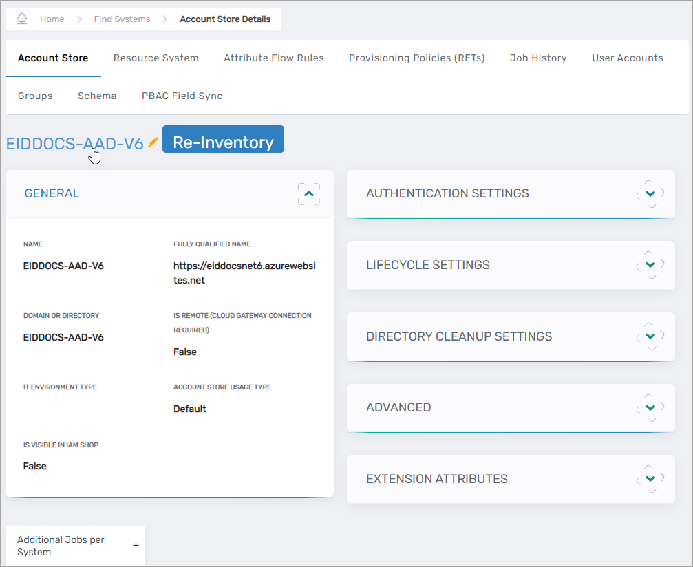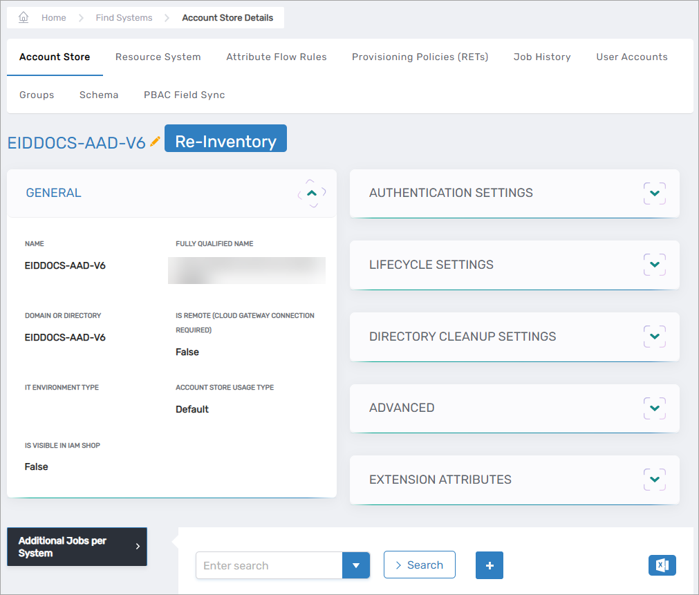 - Navigate to Account Stores and Systems and locate the newly created EntraID account store.