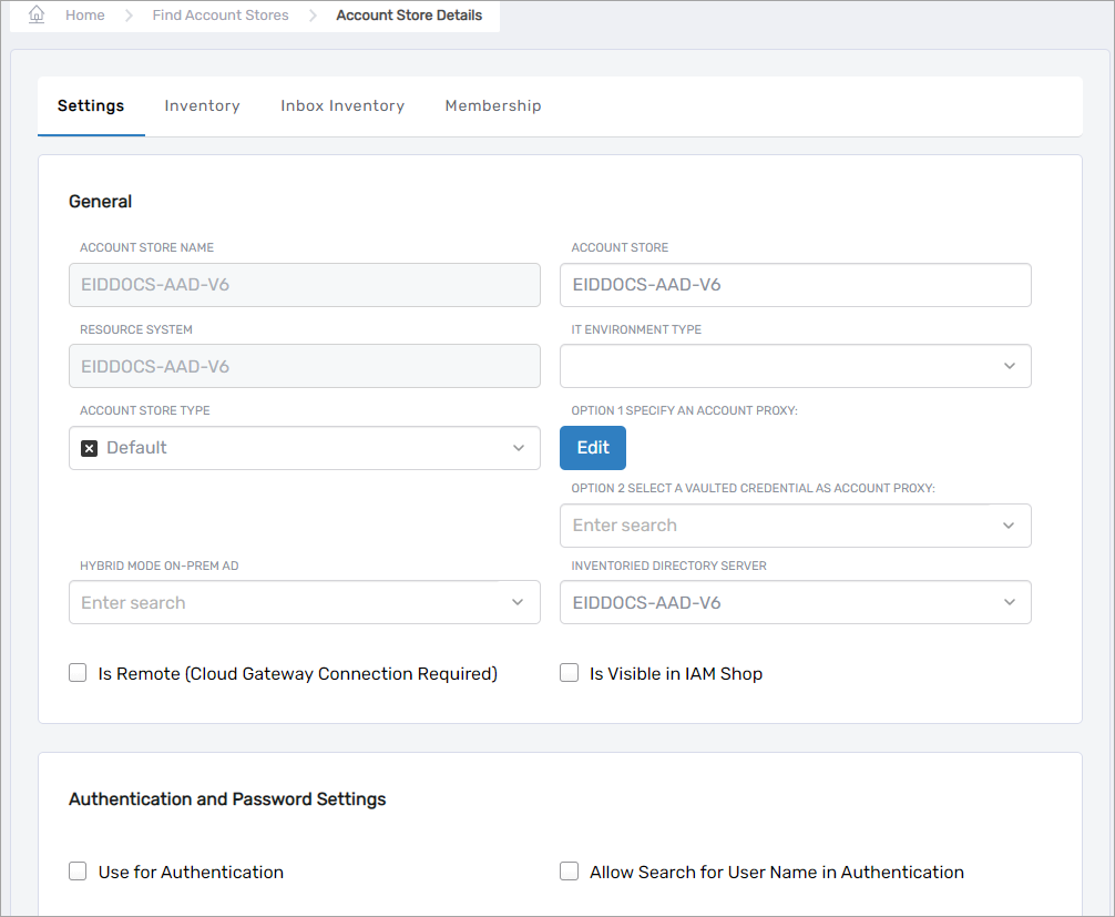 | Inventoried Directory Server | Allows you to select a connected server as the directory server for the account store. |