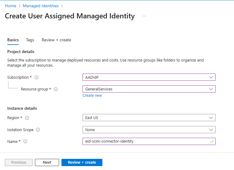 Azure Managed Identities provide an automatically managed identity in Azure Active Directory for applications to use when connecting to resources that support Azure AD authentication. For the EntraID SCIM microservice, you can choose between two types of managed identities based on your organizational requirements and deployment architecture.