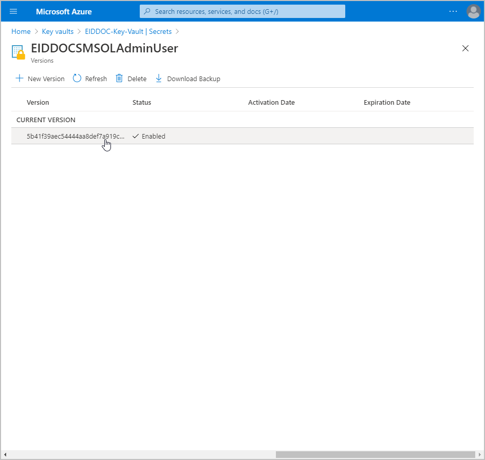 Value – Enter a value for the secret, such as admin@eiddco.onmicrosoft.com.