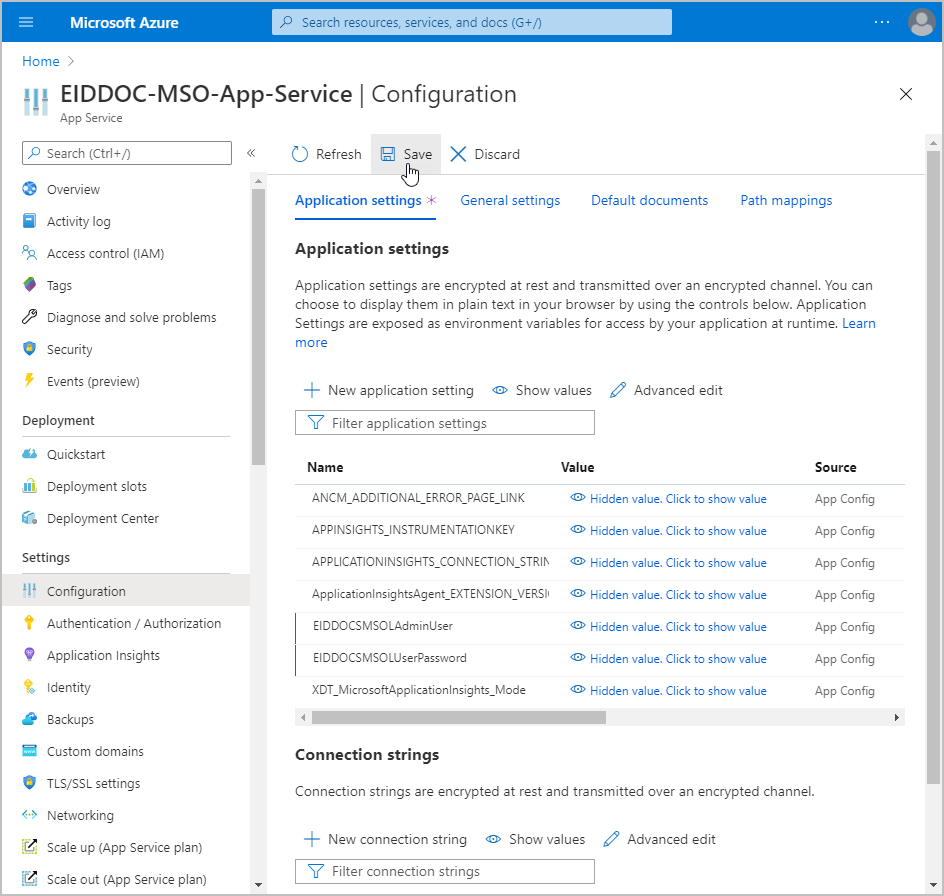 After you have published the MS Online microservice to Azure, you need to create a Key Vault in Azure (if needed), adding secrets to the Key Vault and configuring the App Service Application settings with those secrets.