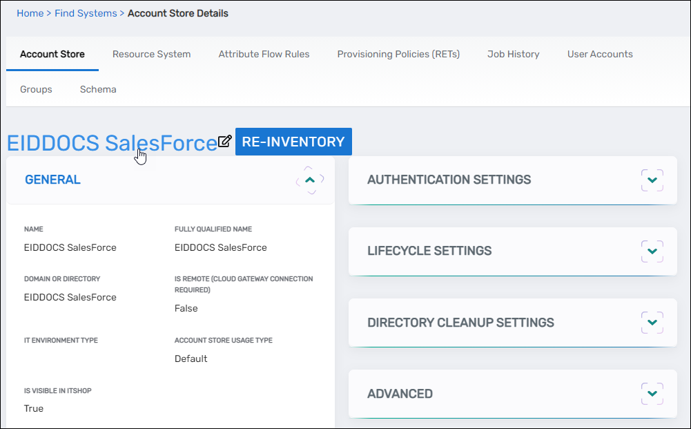 - Navigate to Account Stores and Systems and locate the newly created Linux account store.