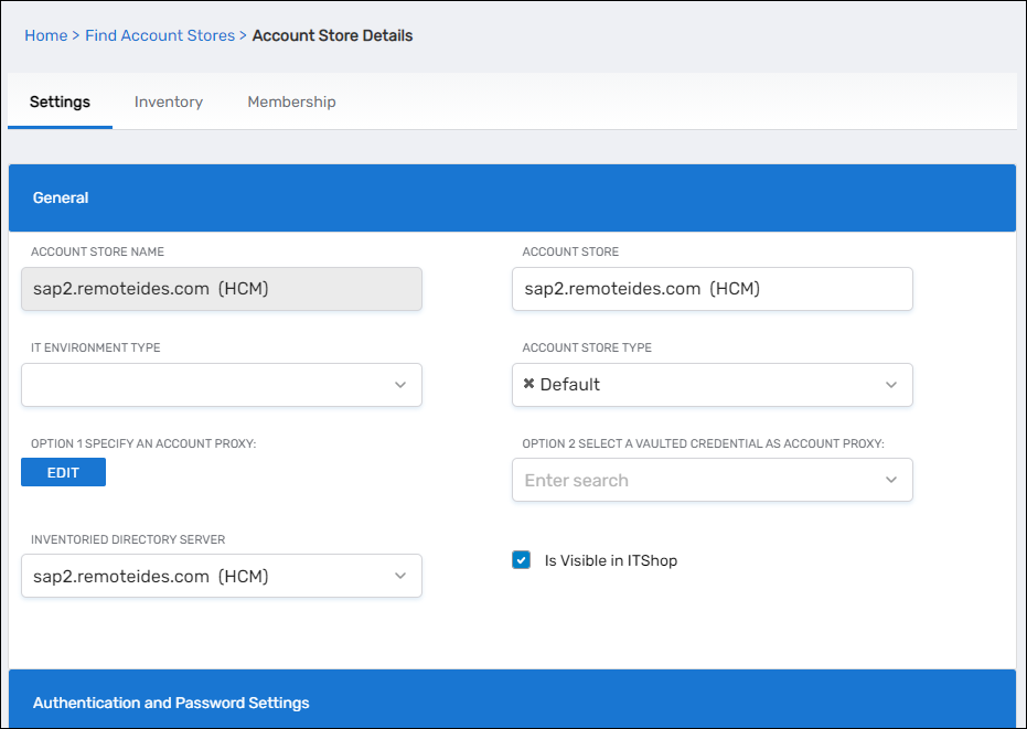 | Inventoried Directory Server | Allows you to select a connected server as the directory server for the account store. |