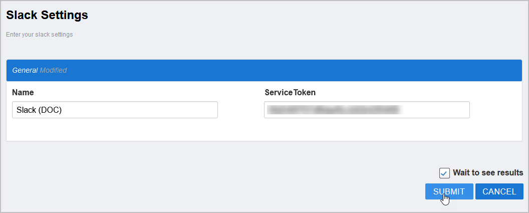 - Click Slack to select the type and then click Submit.