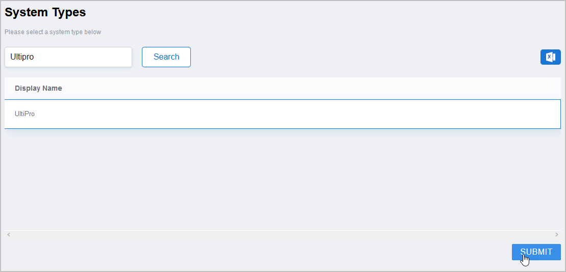 4. Click UltiPro to select the type and then click Submit.