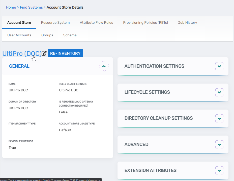 1. Navigate to Account Stores and Systems and locate the newly created Linux account store.
