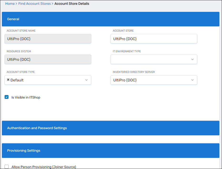 IT Environment TypeAllows you to specify the type of environment in which you are creating the account store.