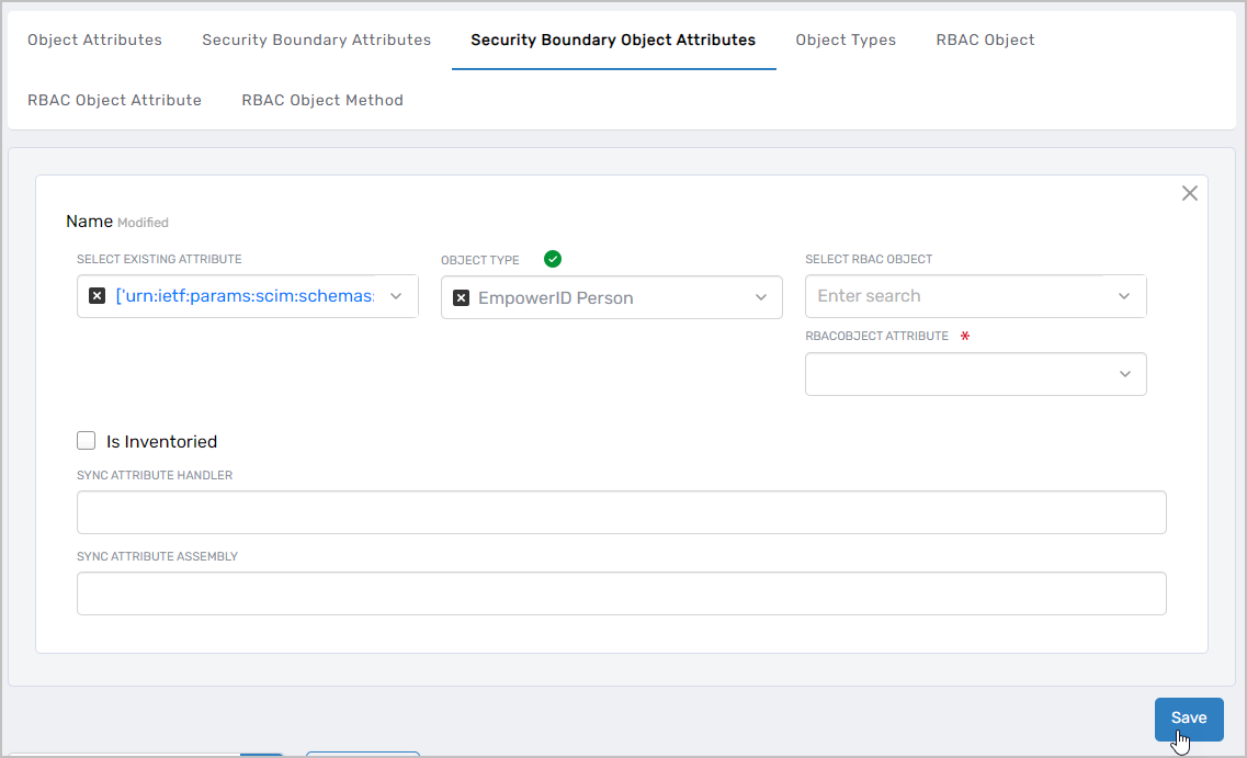 • Create a Security Boundary Object Attribute for EmpowerID Person of Object Type EmpowerID Person. This maps custom attributes to EmpowerID Persons.
