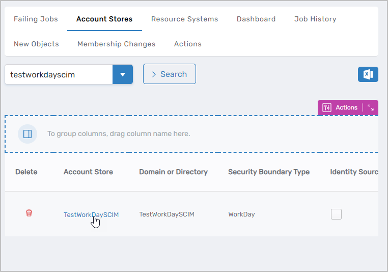 2. Select the Account Stores tab and search for the Workday account store.