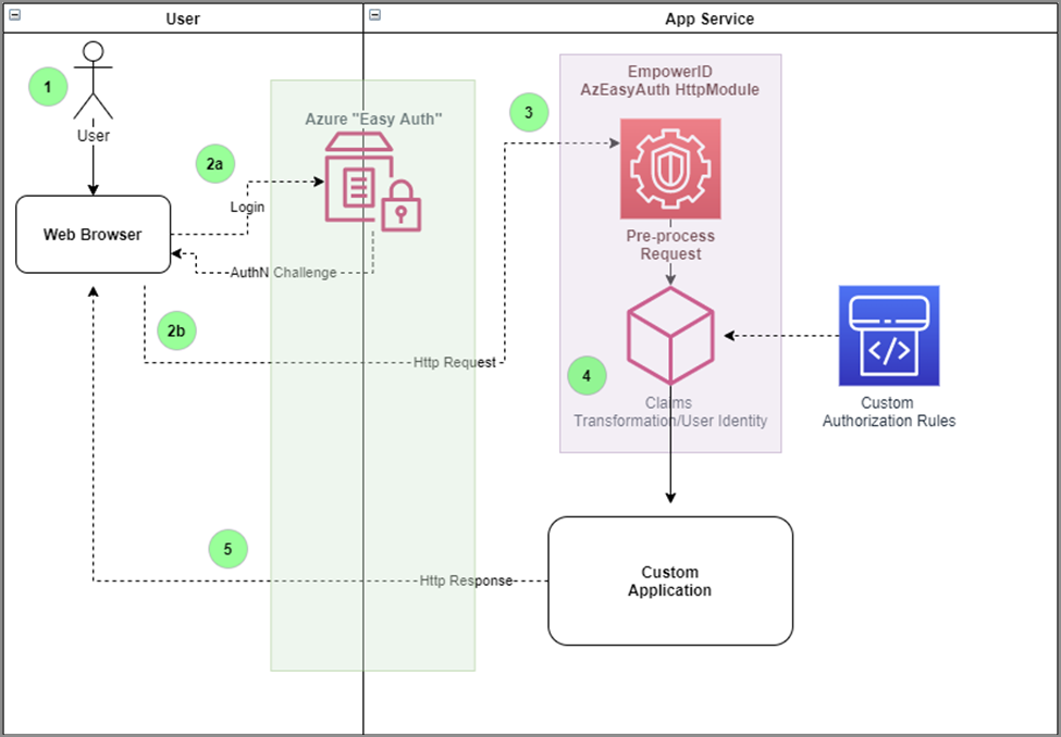 The EmpowerID Azure EasyAuth Http Module (AzEasyAuth HttpModule) is an in-process component that enables legacy .NET web applications to transition Identity Management to the Azure App Service environment. This HTTP module allows you to utilize the built-in authentication/authorization capabilities of the Azure App Service with little or no code changes to your legacy apps.