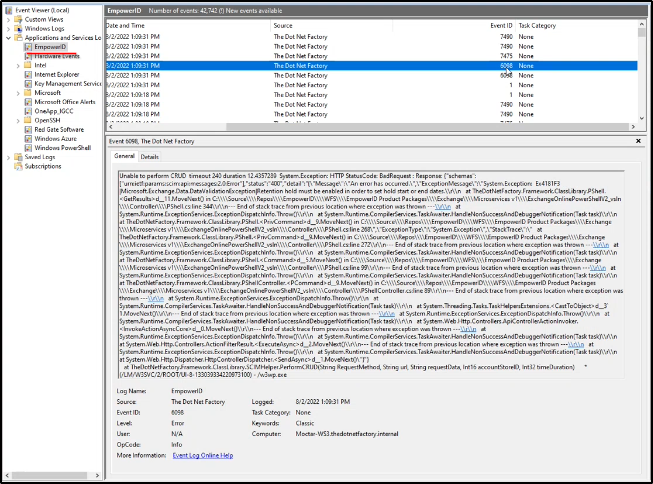 Developers can construct a tracing system utilizing the TdnfTrace class provided by EmpowerID. Implementing the TdnfTrace class allows for logging information into the Windows event log. The TdnfTrace logger records information within the Event Viewer under the path: Application and Services Logs → EmpowerID.
